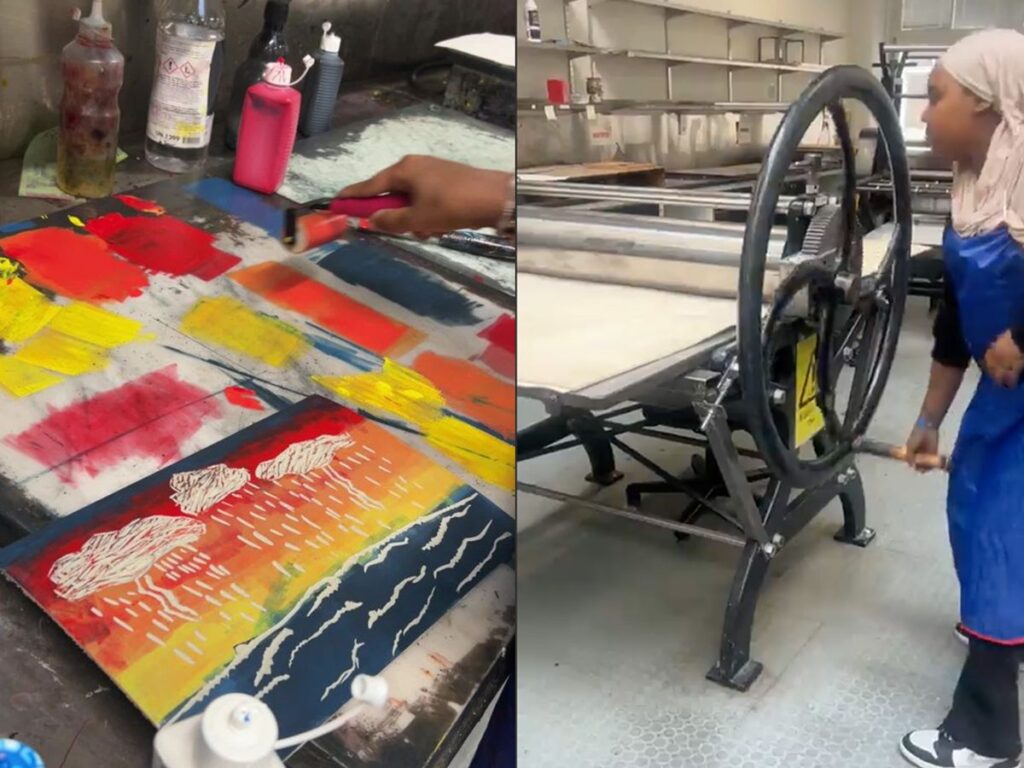 I slutet av varje höstkollo har ungdomarna fått besöka Konstfack, träffa studenter och trycka sina konstverk i skolans grafikverkstad. Nu ställer vi ut deras konstverk i Läsfrämjarinstitutets nya lokaler på Campus Tensta.