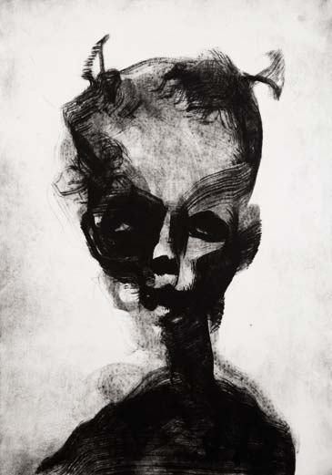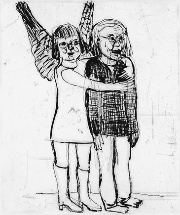 Bild: Lena Cronqvist. Skyddsängel, 2011. Torrnål. Edition Grafikens Hus.