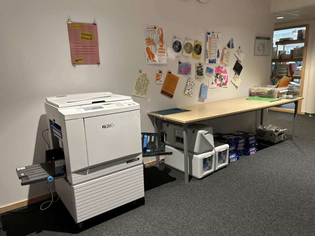För tillfället hittar du Grafikens Hus och vår risograf i Farsta på SITE, intill KKV.